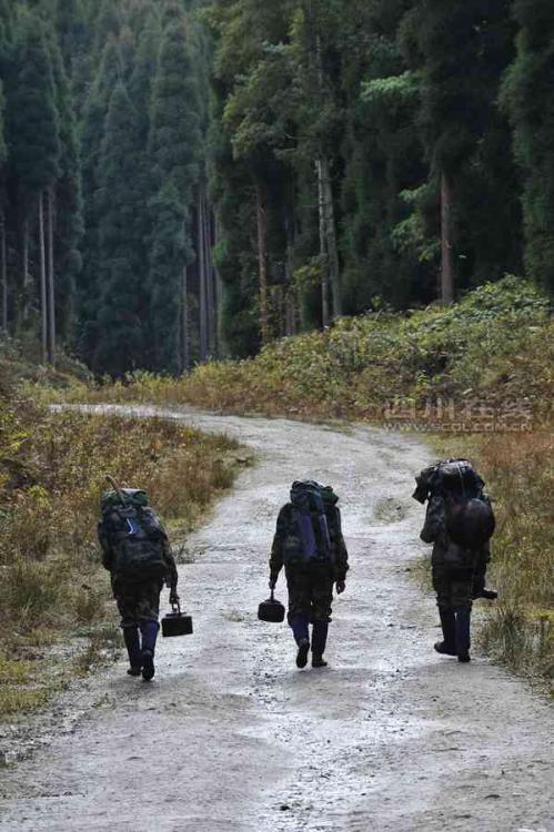 Three rangers loaded with contents of knapsack (Photo/SCOL.com.cn)
