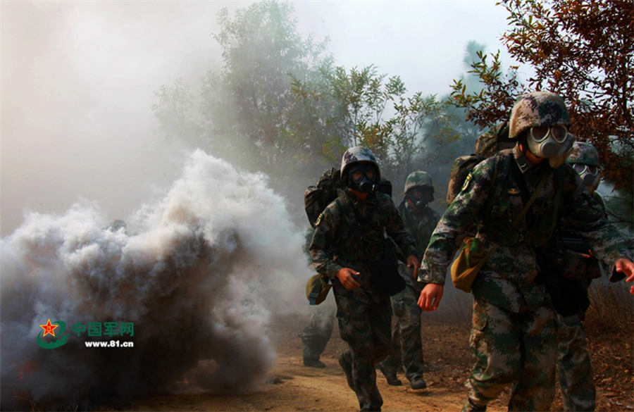 New soldiers of a brigade of Nanjing Military region conduct drills in November 2014. The drill is intended to build up the combat ability and the bodies of the new soldiers. (Photo/www.81.cn)