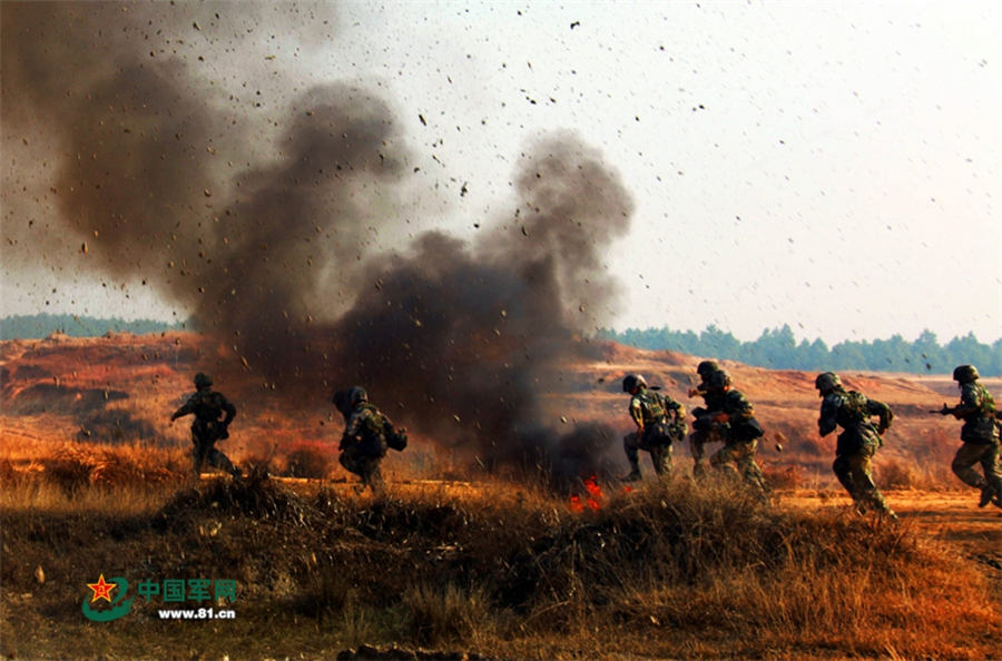 New soldiers of a brigade of Nanjing Military region conduct drills in November 2014. The drill is intended to build up the combat ability and the bodies of the new soldiers. (Photo/www.81.cn)