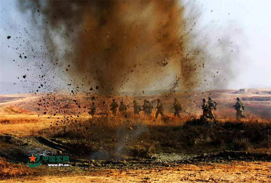 New soldiers of a brigade of Nanjing Military region conduct drills in November 2014. The drill is intended to build up the combat ability and the bodies of the new soldiers. (Photo/www.81.cn)