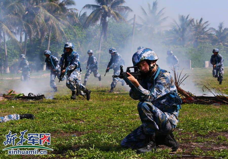 PLA soldiers conduct exercises on Yongxing Island. (Photo/Xinhua)