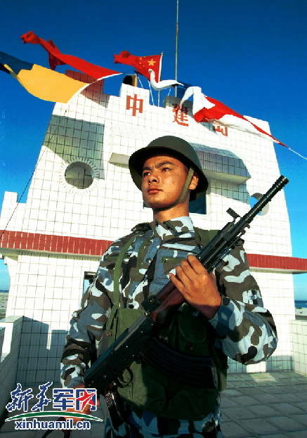 A PLA soldier on Zhongjian Island. (Photo/Xinhua)