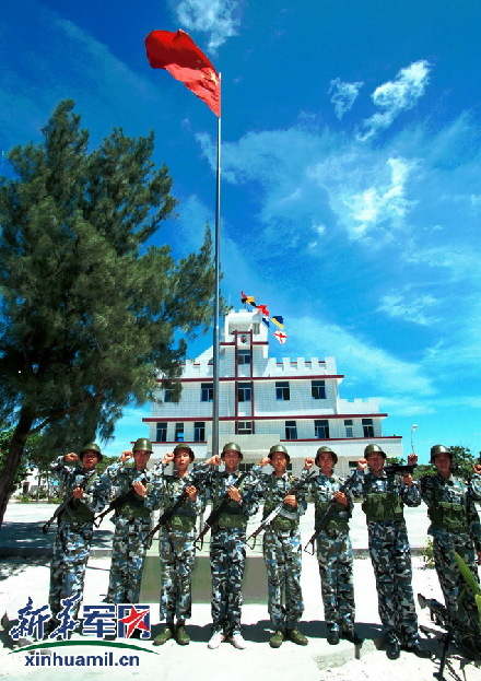 PLA soldiers on Zhongjian Island. (Photo/Xinhua)