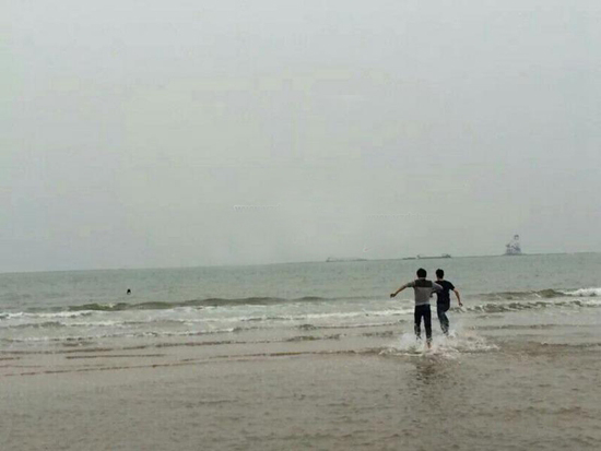 | The first college students burst into the sea to stop the woman from committing suicide. (Photo source: @People’s Daily) |