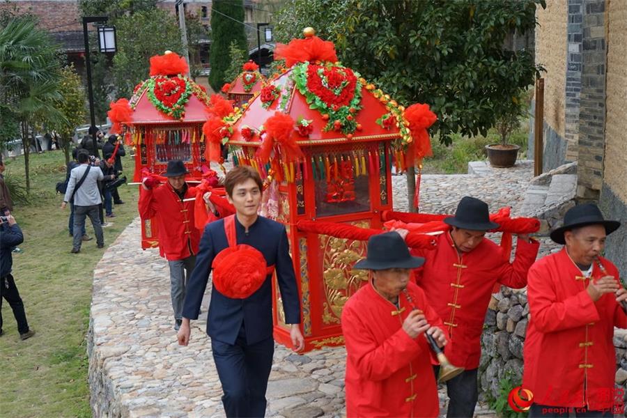 Six pairs of bride and grooms from Shanghai hold a traditional wedding ceremony with local characteristics. (Photo/People.cn)