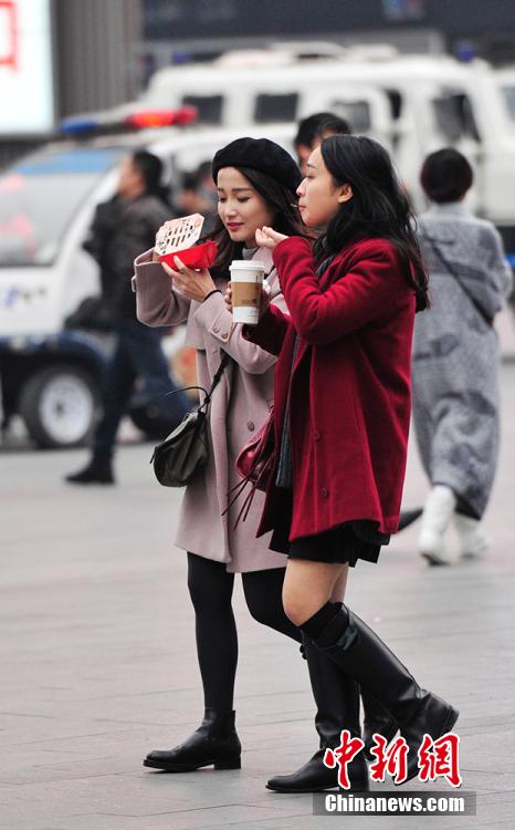 Photo shows the stylish woman walking in the street in Chengdu, southwest China's Sichuan province in winter. Despite of the cold weather, women in Chengdu still prefer skirta. (CNS/An Yuan)