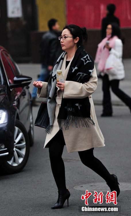 Photo shows the stylish woman walking in the street in Chengdu, southwest China's Sichuan province in winter. Despite of the cold weather, women in Chengdu still prefer skirta. (CNS/An Yuan)