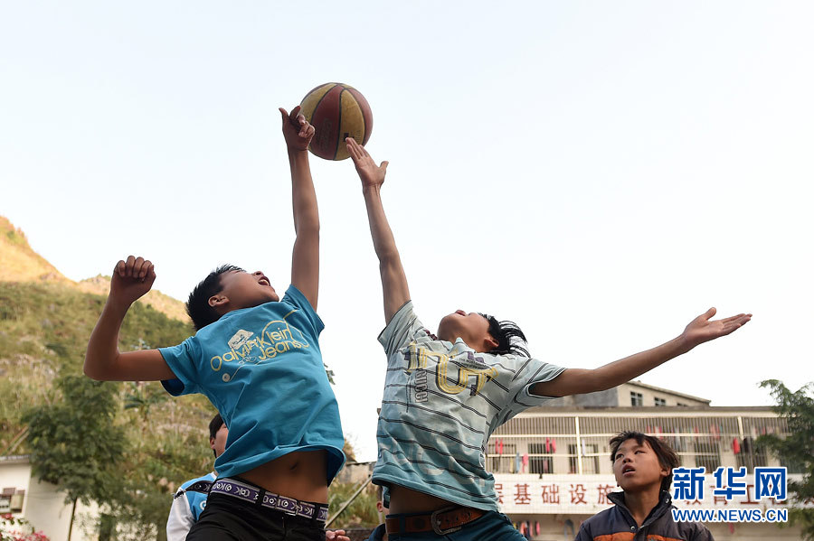 Students play basketball on the playground in a village in Dahua Yao Autonomous County in south China's Guangxi on Dec. 8, 2014. (Xinhua News Agency/Zhang Ailin)