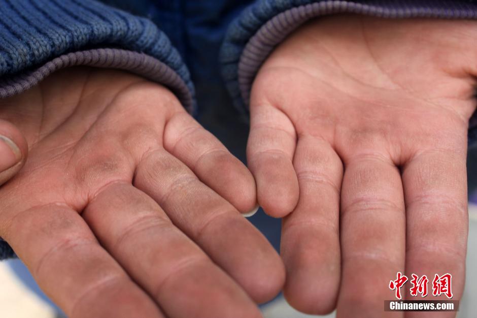His hands are covered with callous. (Chinanews.com/Ma Yiheng)