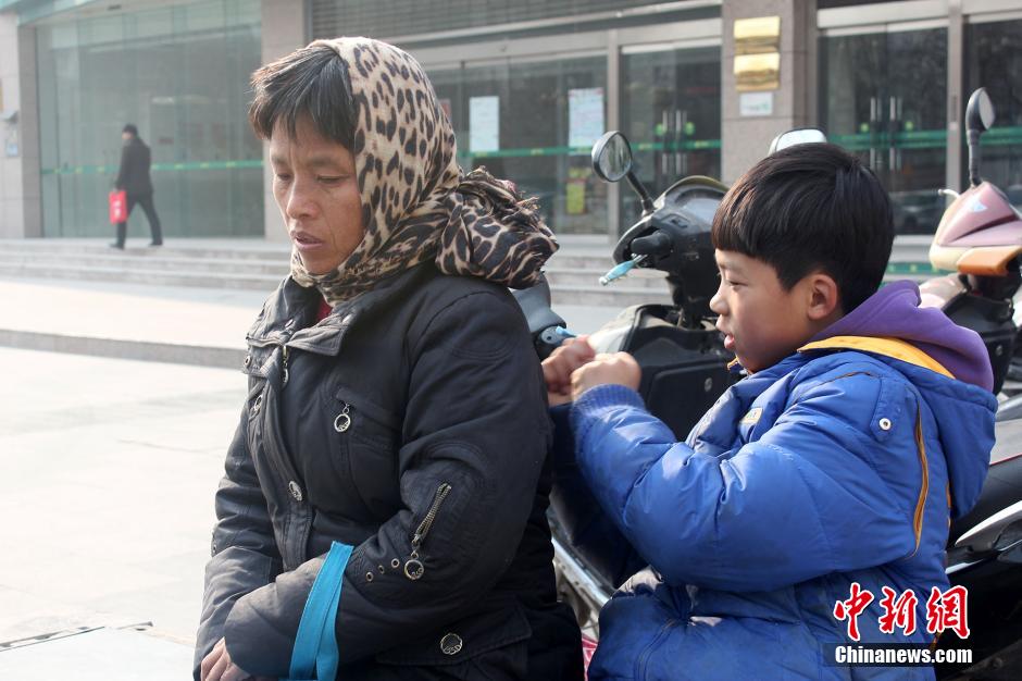 Zhang often pounds his mother’s back to ease her pain. (Chinanews.com/Ma Yiheng)