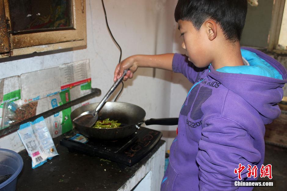 Zhang makes breakfast for his mother. (Chinanews.com/Ma Yiheng)