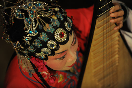 | Lv Chengfang played the pipa, a four-stringed Chinese musical instrument.(Photo/People.cn) |