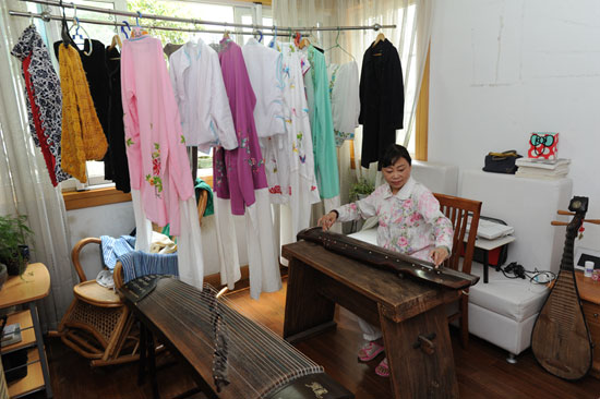 Lv Chengfang plays the guqin, a seven-stringed Chinese musical instrument.(Photo/People.cn)