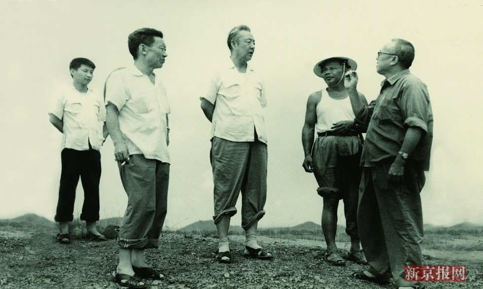 Xi Jinping (L1) follows his father to go to the countryside for investigation in 1978. (Photo/The Beijing News)