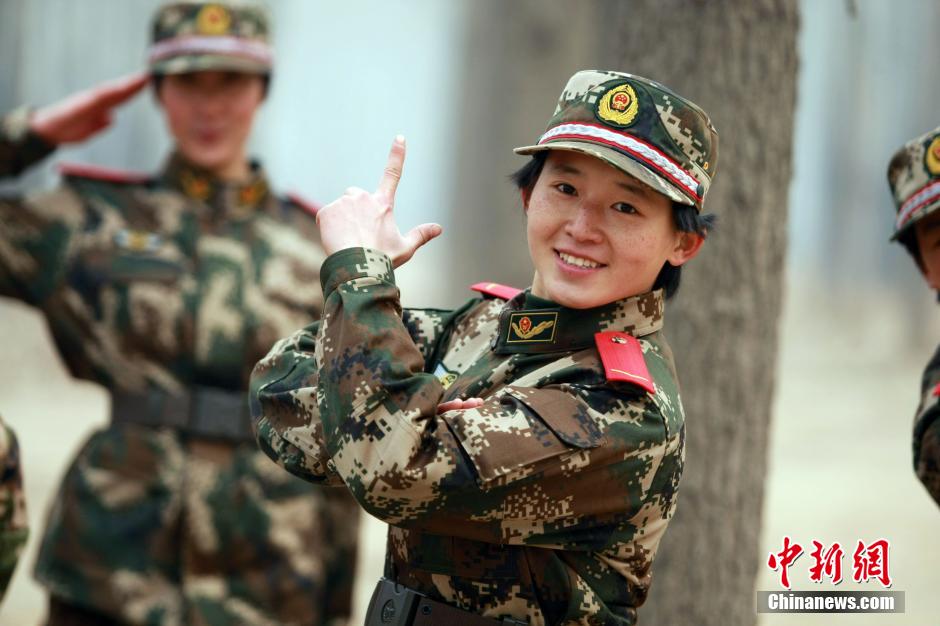 More than 3,000 new female recruits of Beijing Armed Police Force receive training in suburb of Beijing on Dec. 9, 2014. Training subjects include forced march, camping and military boxing in order to strengthen physical condition of the new recruits. (CNS/Yang Huifeng)