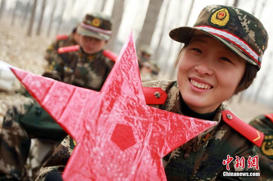 More than 3,000 new female recruits of Beijing Armed Police Force receive training in suburb of Beijing on Dec. 9, 2014. Training subjects include forced march, camping and military boxing in order to strengthen physical condition of the new recruits. (CNS/Yang Huifeng)