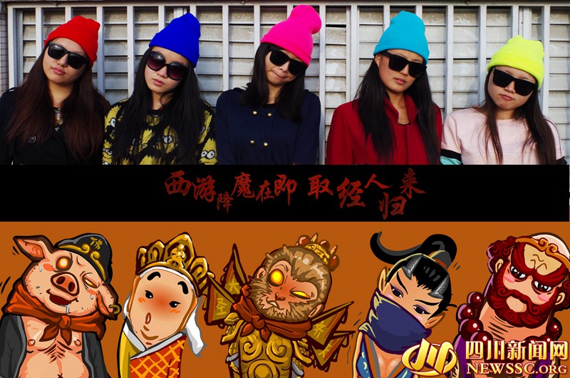 A group of cosplay photos by students from Sichuan Agricultural University goes viral on the Internet. Girls on the photo wear same sunglasses and hats in different colors, posing exactly like the characters on movie and TV show posters.