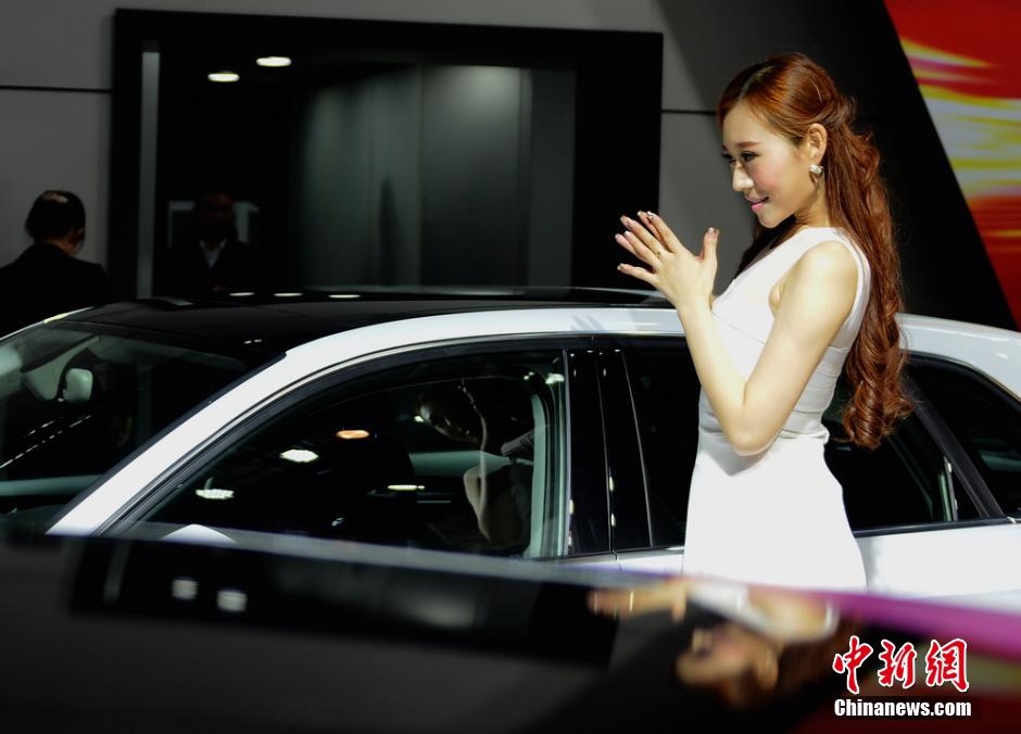 A model presents at the 10th international car exhibition in Changsha, central China's Hunan province on Dec. 11, 2014. The exhibition has attracted thousands of visitors. (CNS/Yang Huafeng)