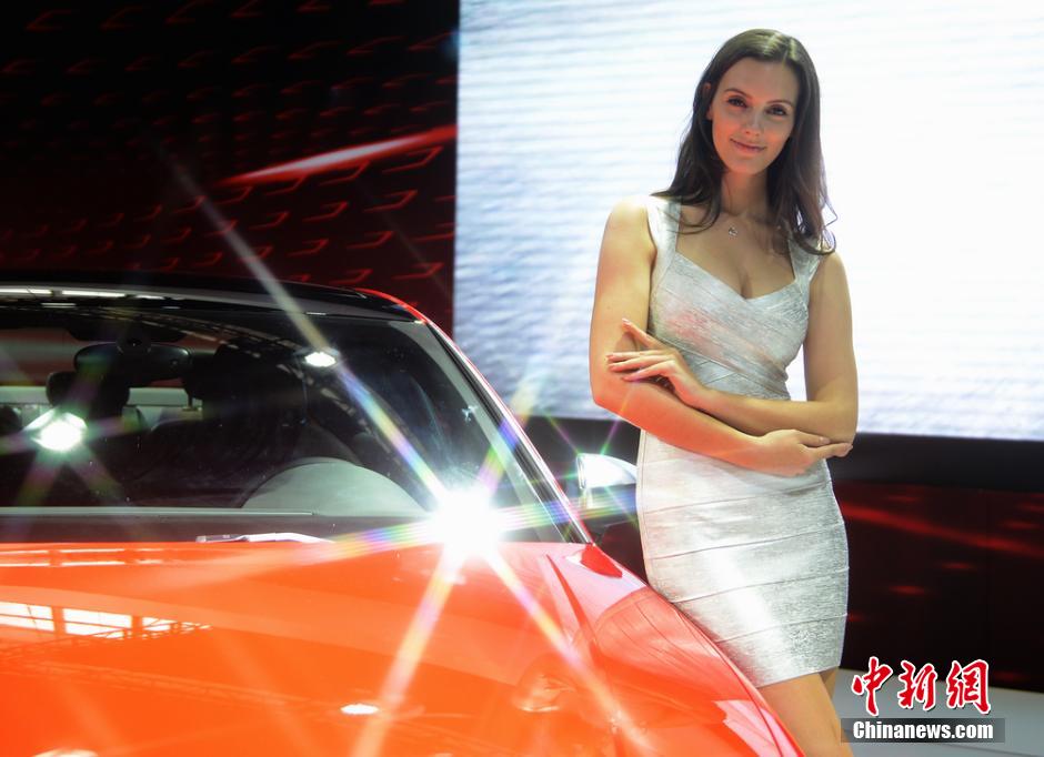 A model presents at the 10th international car exhibition in Changsha, central China's Hunan province on Dec. 11, 2014. The exhibition has attracted thousands of visitors. (CNS/Yang Huafeng)