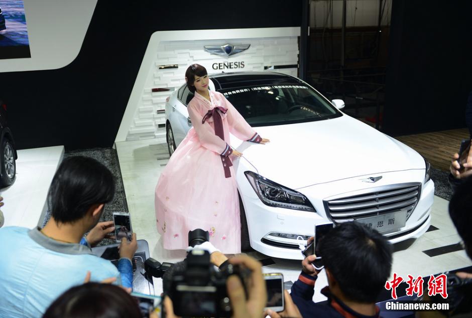 A model presents at the 10th international car exhibition in Changsha, central China's Hunan province on Dec. 11, 2014. The exhibition has attracted thousands of visitors. (CNS/Yang Huafeng)