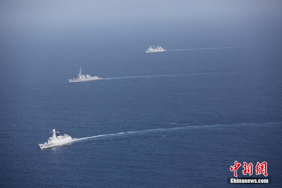 Chinese naval vessels conduct an unplanned encounter drill with US counterparts in Gulf of Aden in accordance with the Code for Unplanned Encounters at Sea (CUES). This is the first unplanned encounter drill between China and the US in the region. (Chinanews/Xiao Yong)