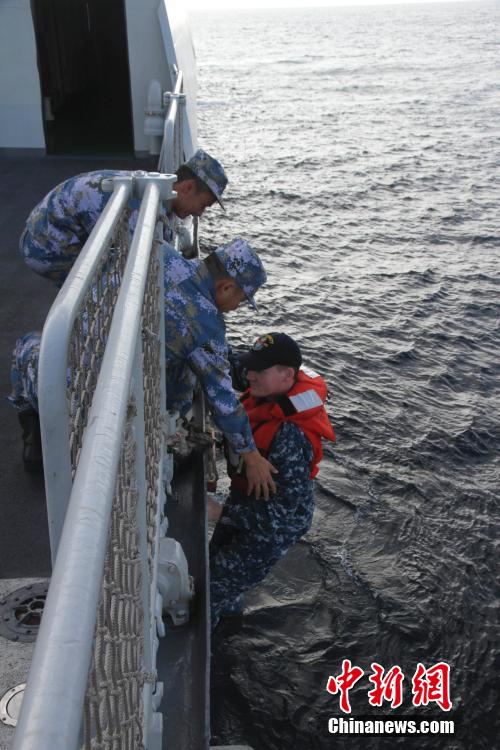 Chinese naval vessels conduct an unplanned encounter drill with US counterparts in Gulf of Aden in accordance with the Code for Unplanned Encounters at Sea (CUES). This is the first unplanned encounter drill between China and the US in the region. (Chinanews/Xiao Yong)