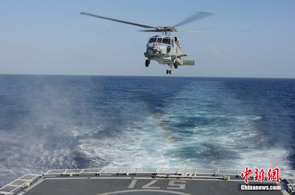Chinese naval vessels conduct an unplanned encounter drill with US counterparts in Gulf of Aden in accordance with the Code for Unplanned Encounters at Sea (CUES). This is the first unplanned encounter drill between China and the US in the region. (Chinanews/Xiao Yong)