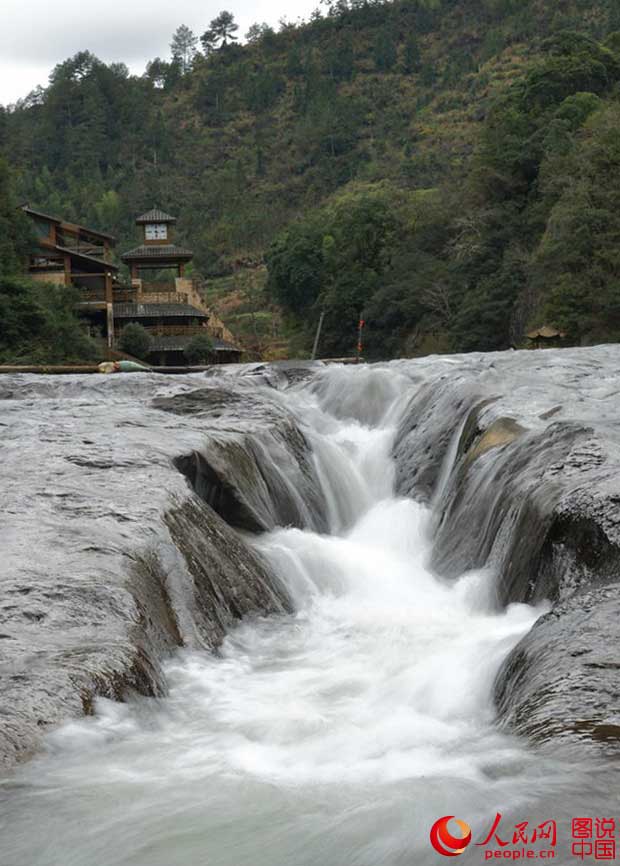 Baishuiyang Scenic Resort is a popular tourist destination in southeast Fujian province, classified as an AAAAA scenic area by the China National Tourism Administration. The riverbed of Baishuiyang is made of a single flat rock. When looking down on it, it looks like a raked field nestled in the lofty mountains and high ranges. Of the three large shallow pools, the largest is 40,000 square meters. (Photo/People.cn)