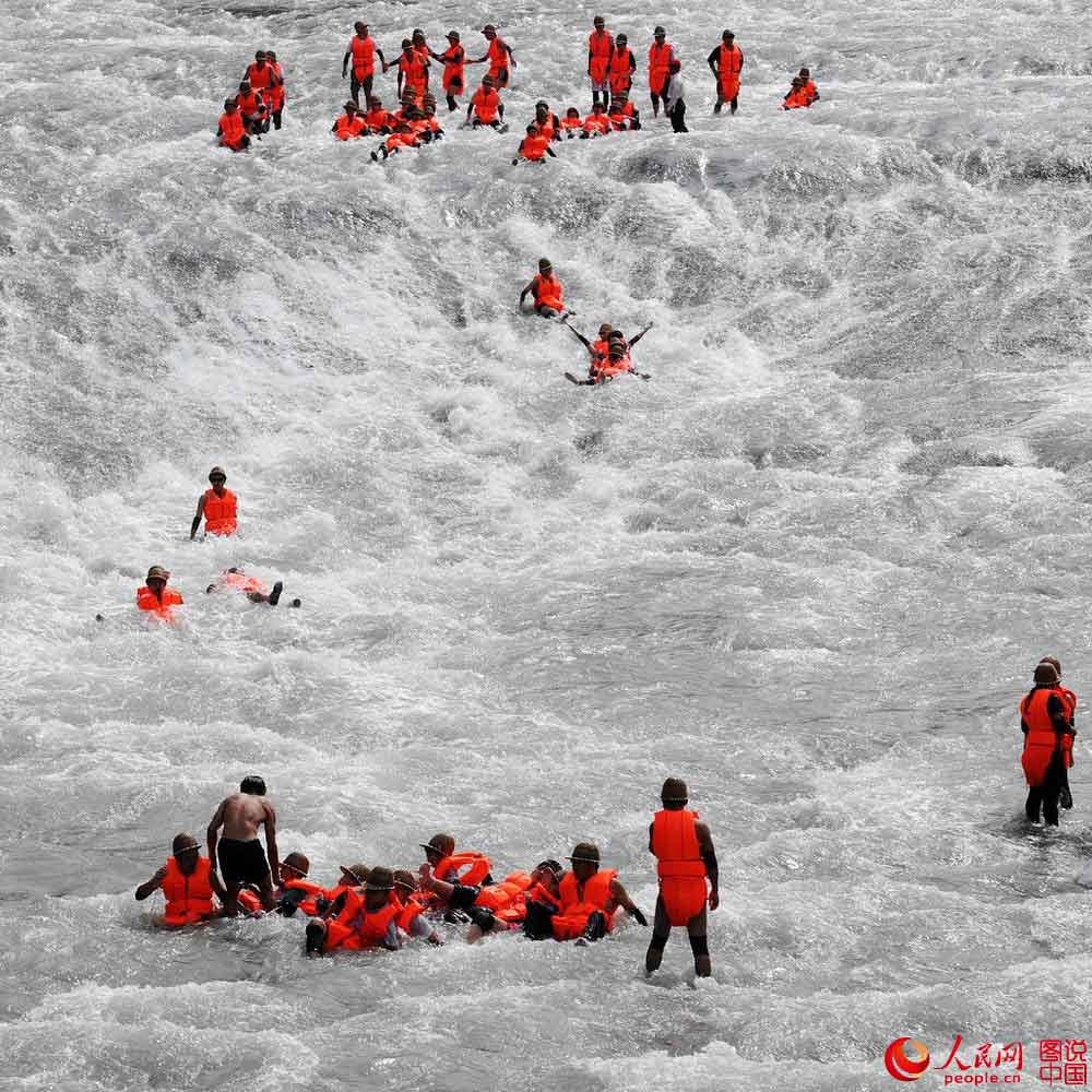 | Baishuiyang Scenic Resort is a popular tourist destination in southeast Fujian province, classified as an AAAAA scenic area by the China National Tourism Administration. The riverbed of Baishuiyang is made of a single flat rock. When looking down on it, it looks like a raked field nestled in the lofty mountains and high ranges. Of the three large shallow pools, the largest is 40,000 square meters. (Photo/People.cn) |