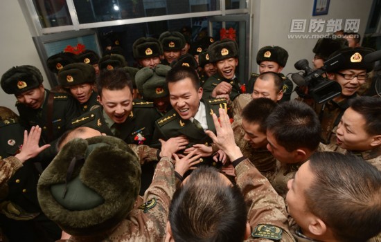 Officers and soldiers ask for red packet from Zhang Bo.(Photo/mod.gov.cn)