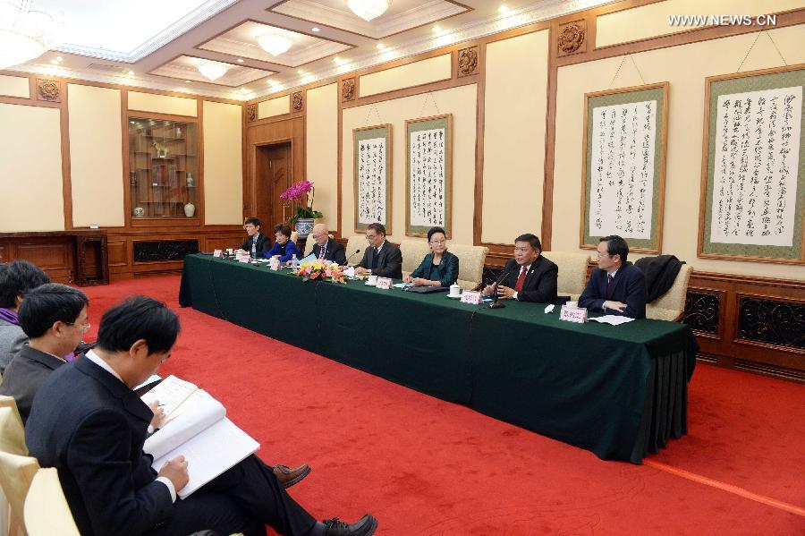 | Photo taken on Dec. 15, 2014 shows a session of the Symposium Commemorating the 35th Anniversary of the Establishment of China-US Diplomatic Relations held in Beijing, capital of China. (Xinhua/Chen Yehua) |