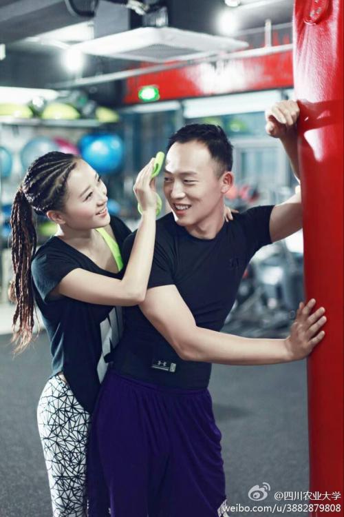 Li Xu (male) and Tan Suyang (female) are two PE teachers at Sichuan Agricultural University. They got married in 2014 and the wedding photos show their sweet love towards each other. (Photo/Microblog of Sichuan Agricultural University)