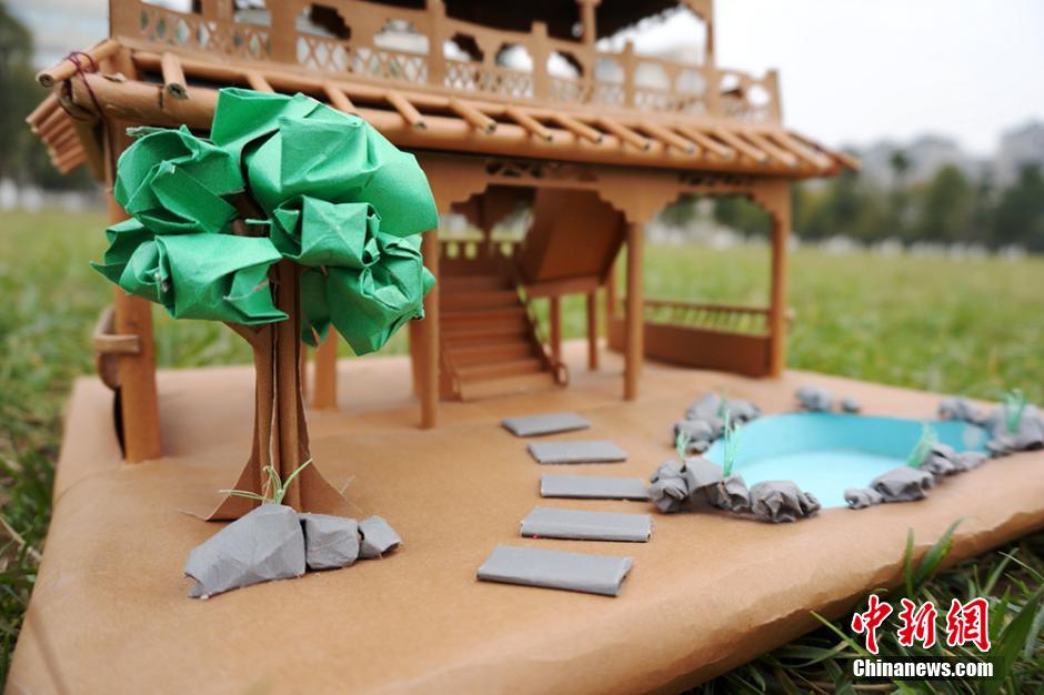 At a design contest held by SCU Jinjiang College, Wei Shuang, Zhang Yayi, and Huang Peiheng - three sophomores of the Engineering Cost major - designed and built a delicate villa with 4,000 sticks, which became the most popular piece of work at the contest.