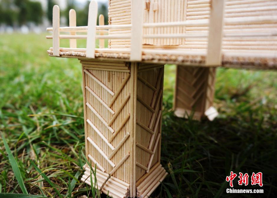 At a design contest held by SCU Jinjiang College, Wei Shuang, Zhang Yayi, and Huang Peiheng - three sophomores of the Engineering Cost major - designed and built a delicate villa with 4,000 sticks, which became the most popular piece of work at the contest.