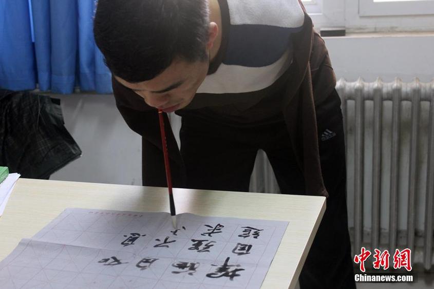 Wu Jianping practices calligraphy in his spare time for relaxation. (Photo/ Ma Yiheng)