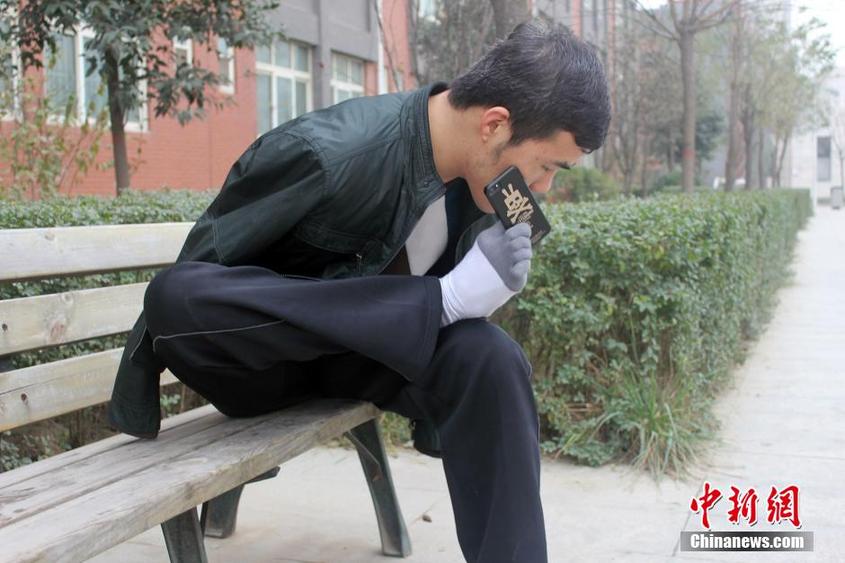 Wu Jianping is a very optimistic person. He talks with his friend on the phone every day. (Photo/ Ma Yiheng)