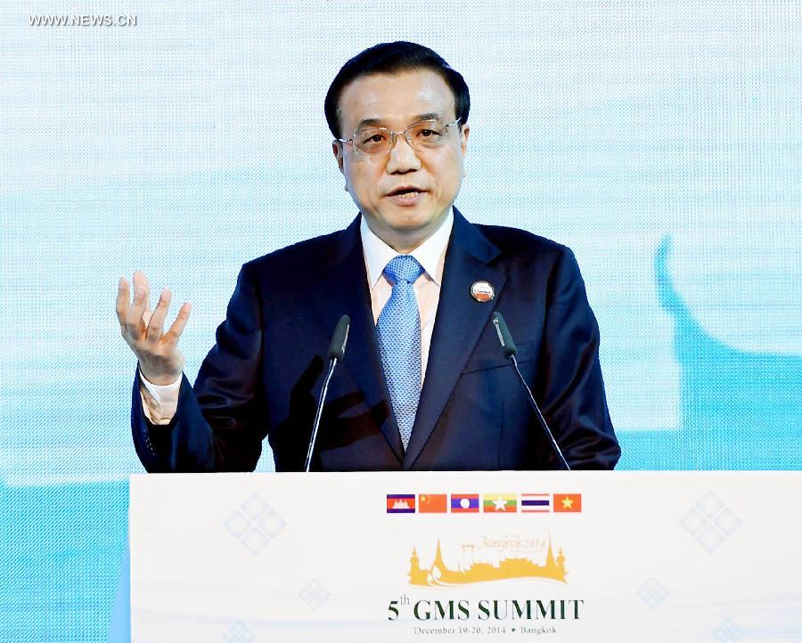 Chinese Premier Li Keqiang delivers a speech at the opening ceremony of the fifth summit of the Greater Mekong Subregion (GMS) Economic Cooperation in Bangkok, Thailand, Dec. 20, 2014. (Xinhua/Rao Aimin)