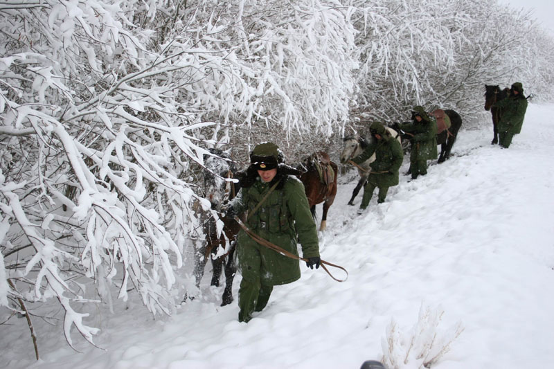 Soldiers of the Shenxianwan border post walks in snow. (www.81.cn/Zhou Tao)