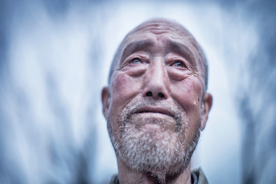 | An old soldier waits for the remains of the 437 martyrs of Chinese People's Volunteer Army. They were sent back from South Korea after 60 years. (Photo/People's Daily Online) |