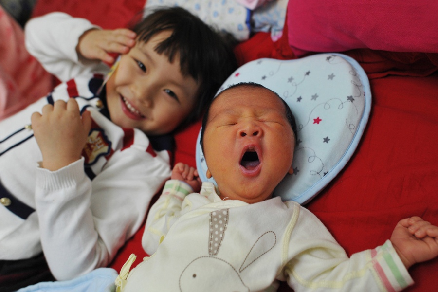 This little girl kisses her newly born brother every day. (Photo/People’s Daily Online)