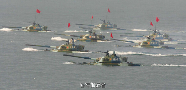 Military equipment sometimes would line up in different formations to support the tactics in missions. Here are some pictures of the equipment lined up for training.(Photo/Weibo)