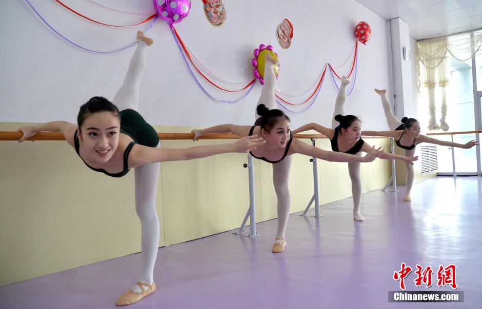 Dance majors practice basic skills in the training room on Dec. 20, 2014. (Chinanews/Hao qunying)