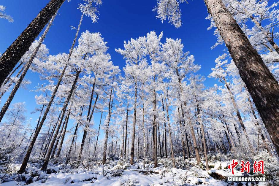 The winter scenery of northeast China’s Great Khingan Mountains is especially spectacular. The rime lasting for over 50 kilometers makes the place a fairyland. (Chinanews/Zhang Fu)