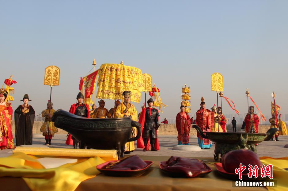 | On Dec. 22, the winter solstice of 2014, an ancient Chinese heaven worshipping ceremony is held in the Daming Palace Relics Park in Xi’an, northwest China’s Shannxi province. (Chinanews/Zhang Yuan) |