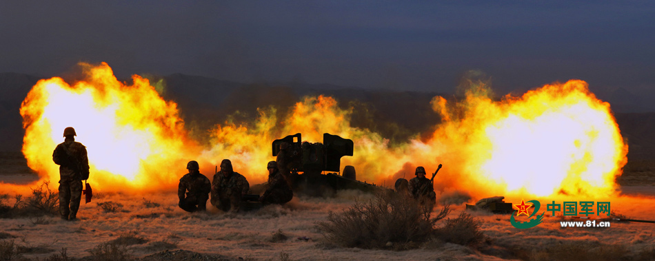 An artillery regiment successfully conducts a winter shooting test in northwest China’s Xinjiang Uygur autonomous region On Dec. 19, 2014. All the targets were hit precisely. (www.81.cn/Geng Yunlong)