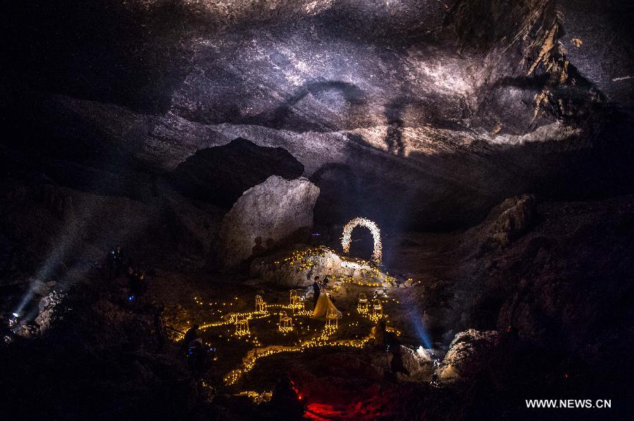 Couple hold wedding ceremony at karst cave in SW China's Chongqing (4)