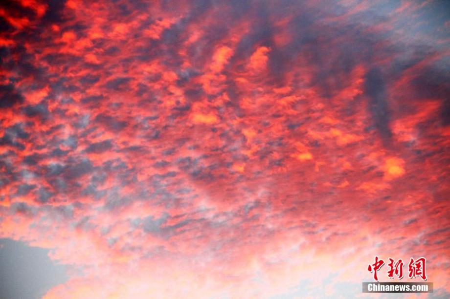 Photo shows the scenery of flaming clouds in Suichuan, southeast China's Jiangxi province on Dec. 23, 2014. (Photo/CNS)