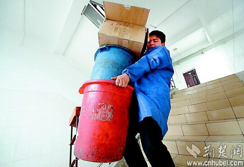 Luo Qunshu, junior student at Wuhan Bioengineering College, does odd jobs in his spare time and earns 1,625 yuan a month. He sometimes does six odd jobs a week. What touches us most is him supporting 41 poor students while he himself eats nothing but steamed buns.(Photo/cnhubei.com)