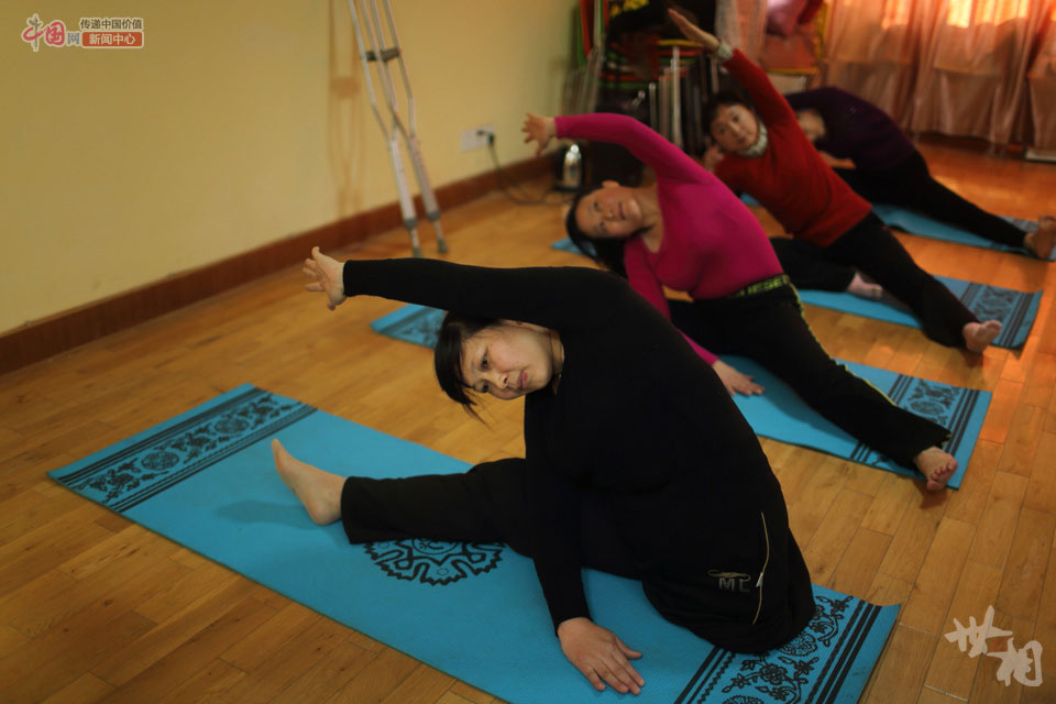 Xiong Yan does yoga with her team members.(Photo/China.org.cn)