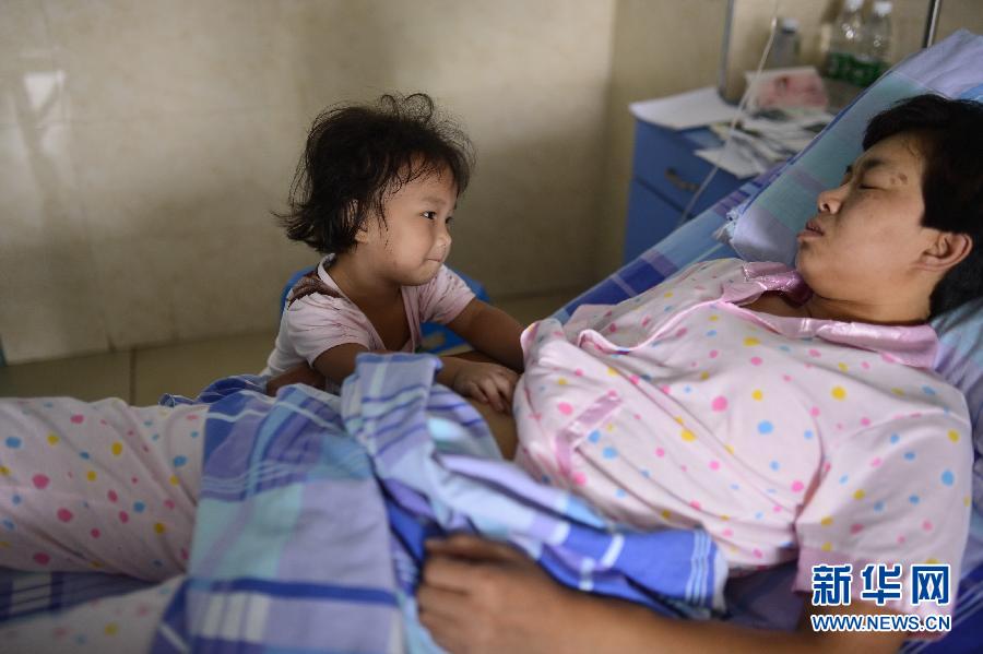 A little girl takes care of her sick mother. (Xinhua/Zhou Mi)